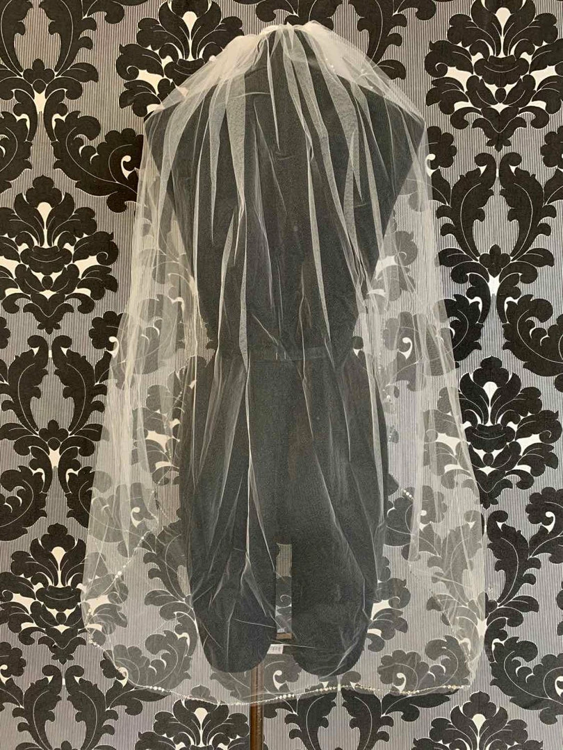 finger tip Ivory Tulle with Silver Beaded edge Veil