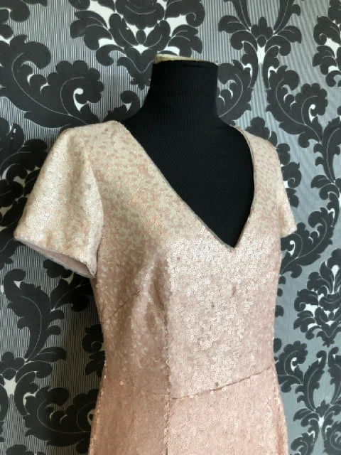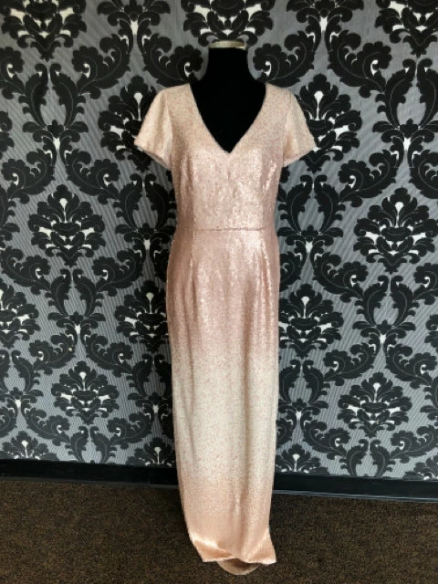 Adrianna Papell All Sequin Blush Ombre Size 8 Cap Sleeve Floor Length