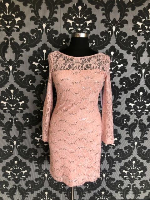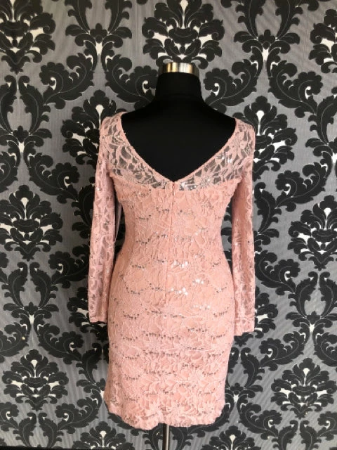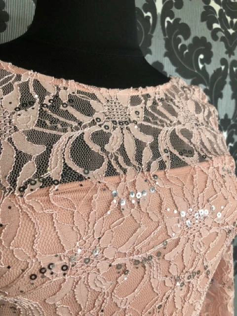 Size 14 Blush JS Collection Knee Length Lace Long Sleeve