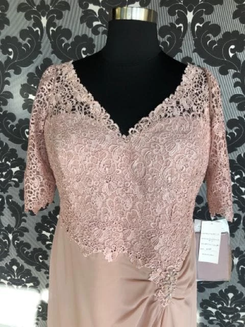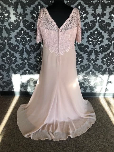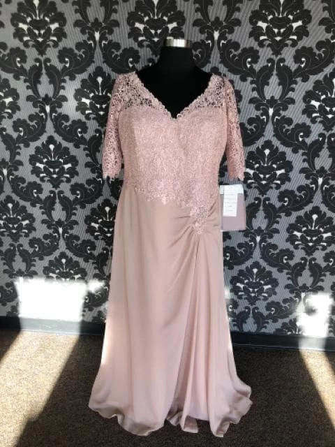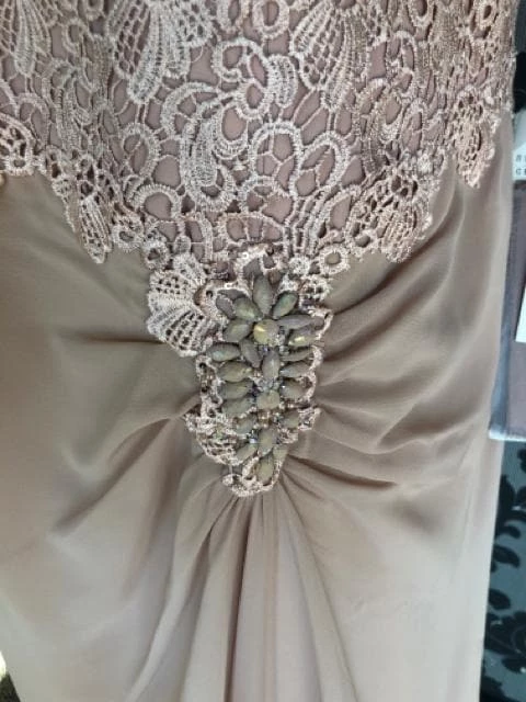 style – 113906W lace top with chiffon side ruched plain skirt side applique