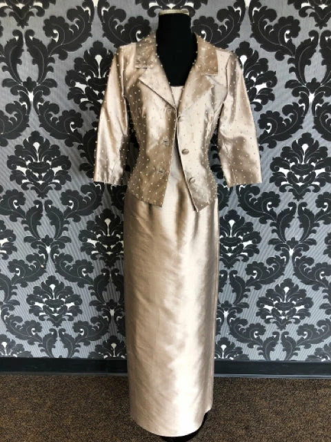 23967 Plain Taupe Dress with Matching Pearl Beading Jacket