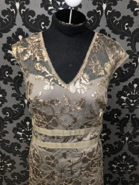 Tadashi Shoii Women Formal Lace/Sequin Gold/Gray Size 14