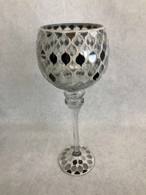 13.75″ Silver Mosaic Goblet Candle holder