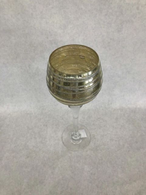 13″ gold mercury glass goblet candle holder with glitter design