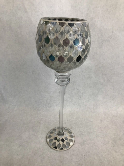 15.5″ Silver Mosaic Goblet Candle holder