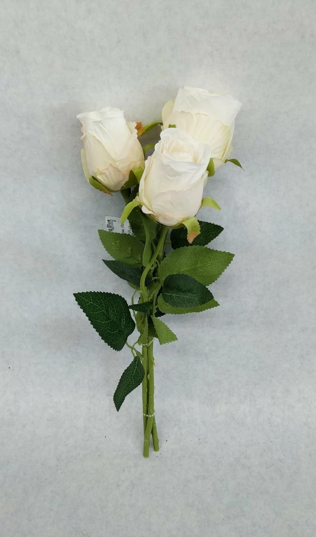 14″ Ivory Rose Bud W/ Blush Tint- 3 Stem Bundle