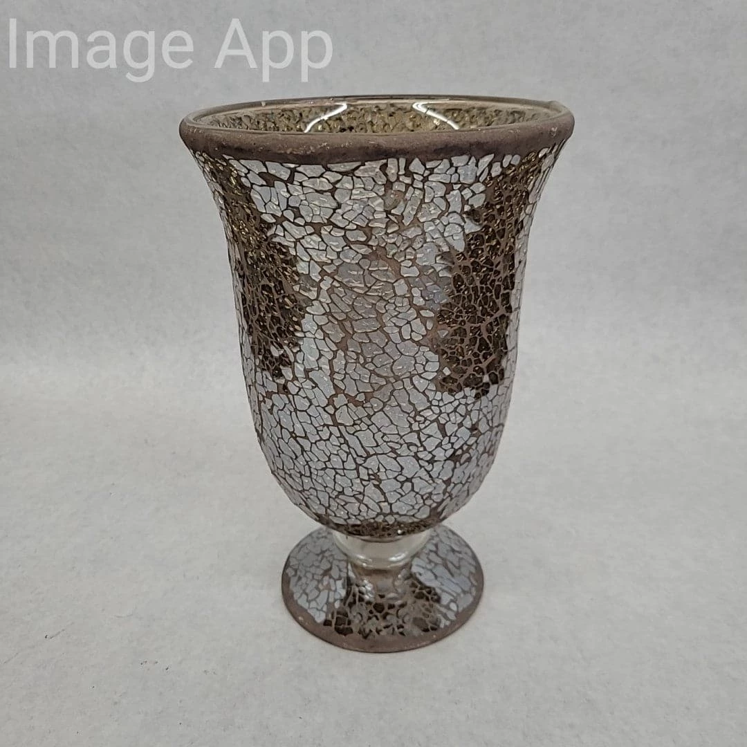 9.5″ Footed Urn Brown Crackle Glass Vase