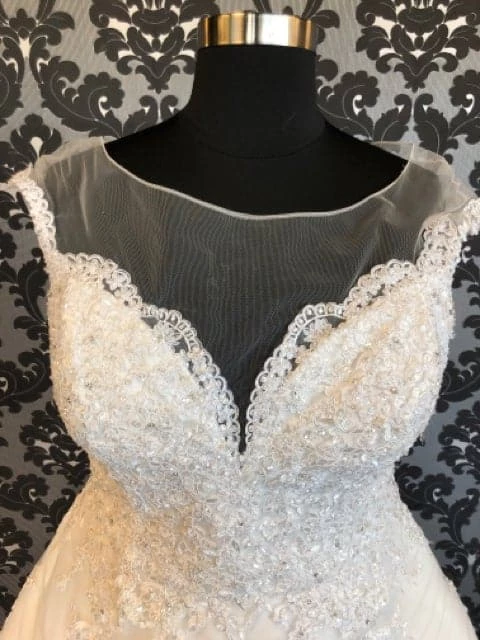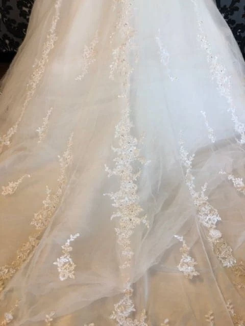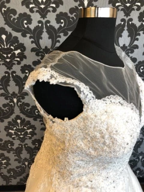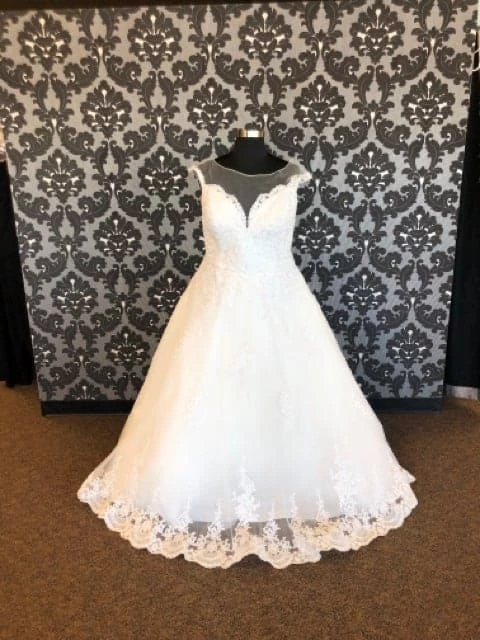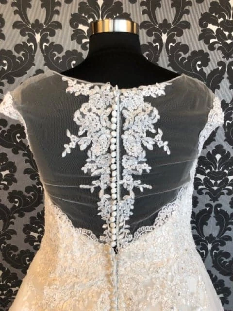 House Of Wu 15657 Wedding Dress Lace/Tulle Ivory Size 22 AS IS HOLES IN SKIRT- HENSLEE