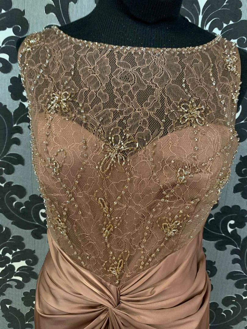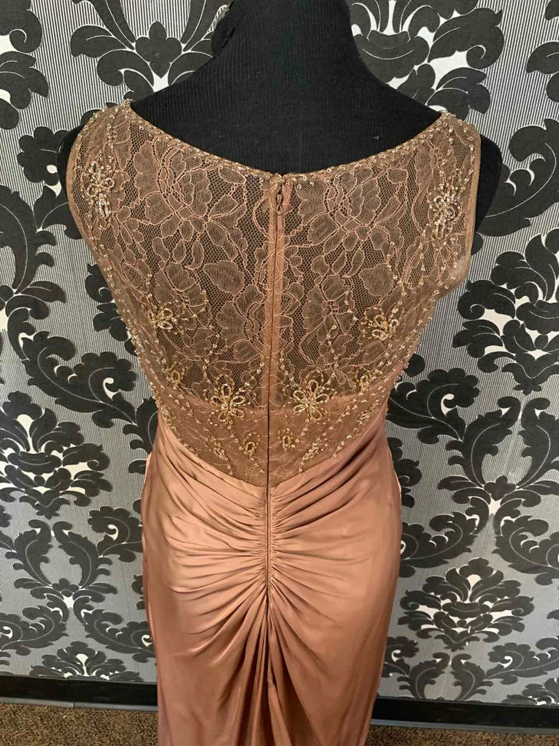 Jade Couture K168068 Formal Silk/Lace Mocha Size 8 Floor-length