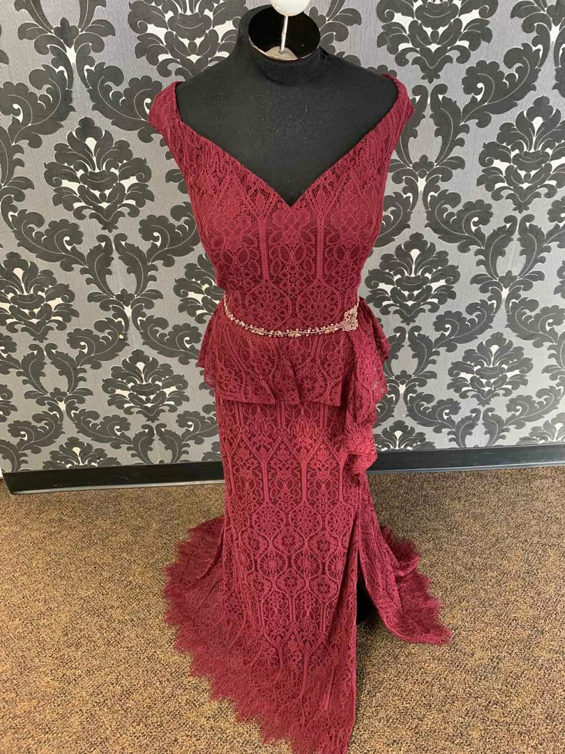 Jade Couture K218061 Formal Lace/Beading Cranberry Size 12