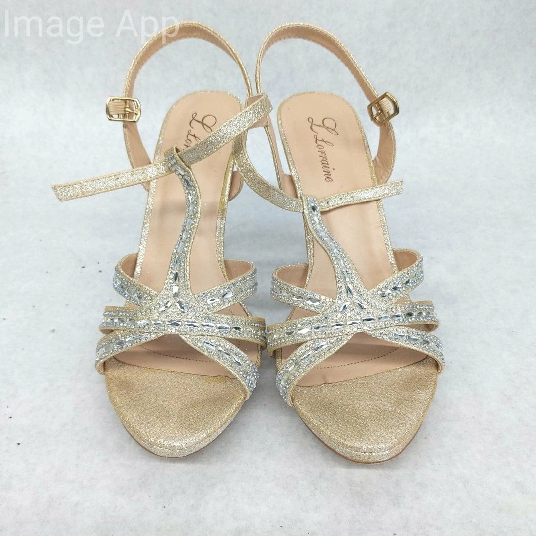 L Lorraine Heels Sparkle Champagne/Silver Size 10