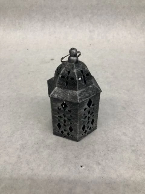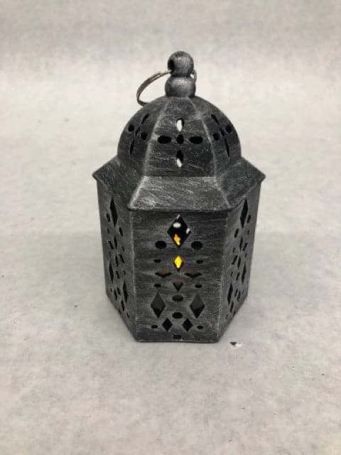 4.5″ Mini LED brushed silver lantern with Amber Tea Light