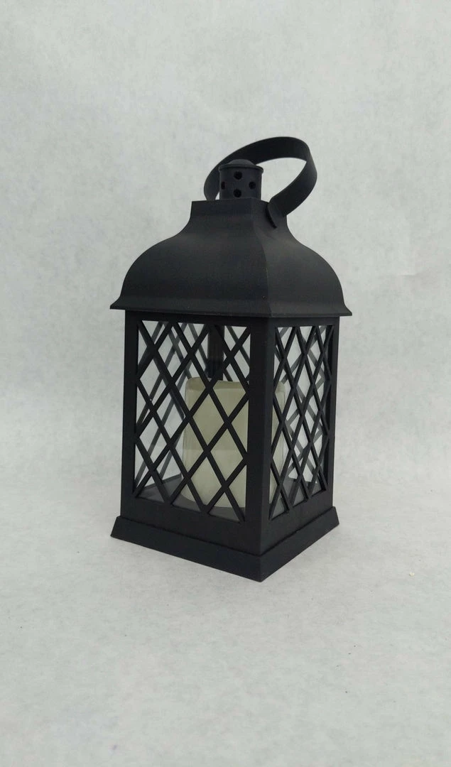 11″ Black Lantern w/ Diamond Pattern and LED Pillar Candle