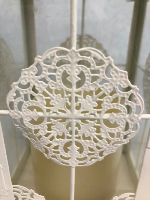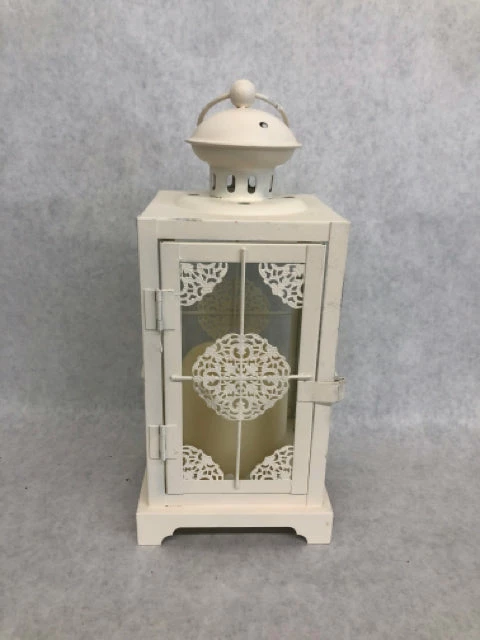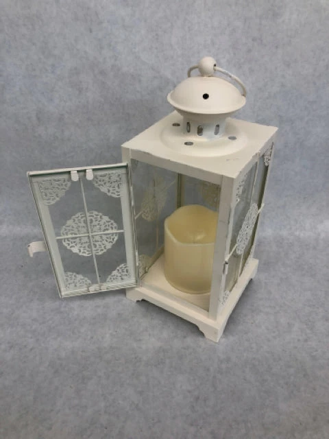 5″x10″ Off White Lantern with LED Pillar Candle and ornate details