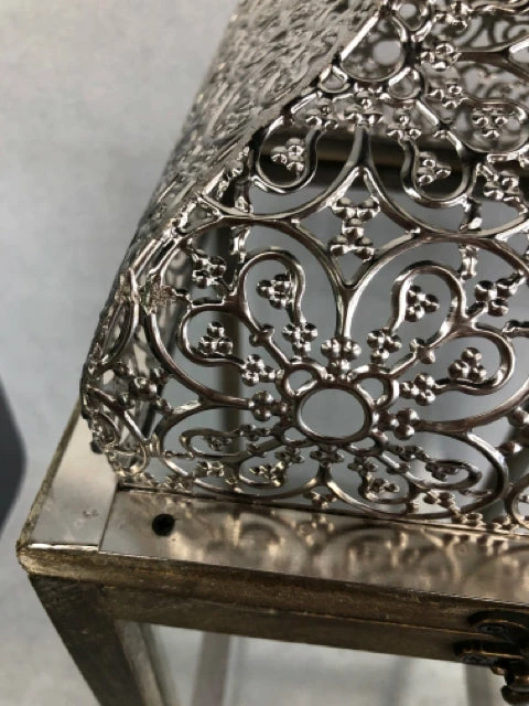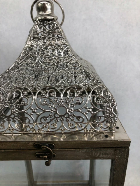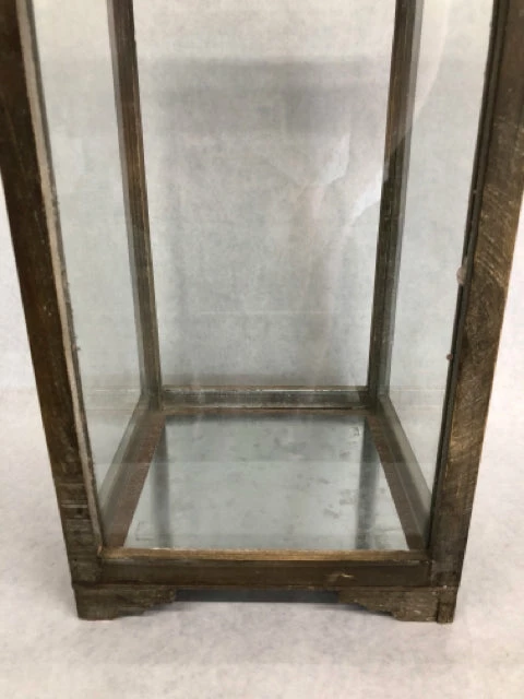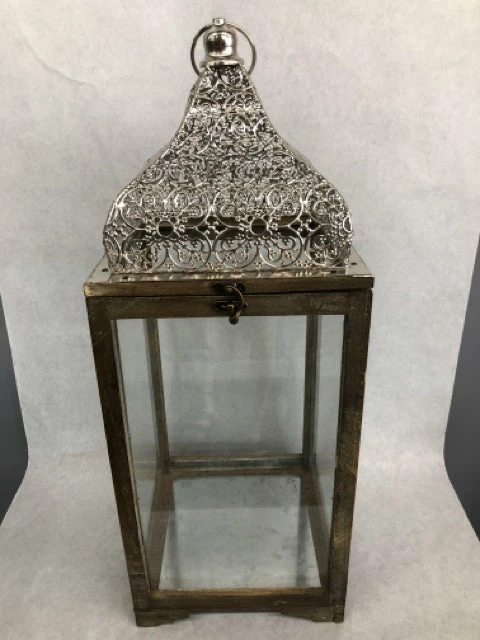8.5″x22.5″ Wood lantern with ornate silver metal top