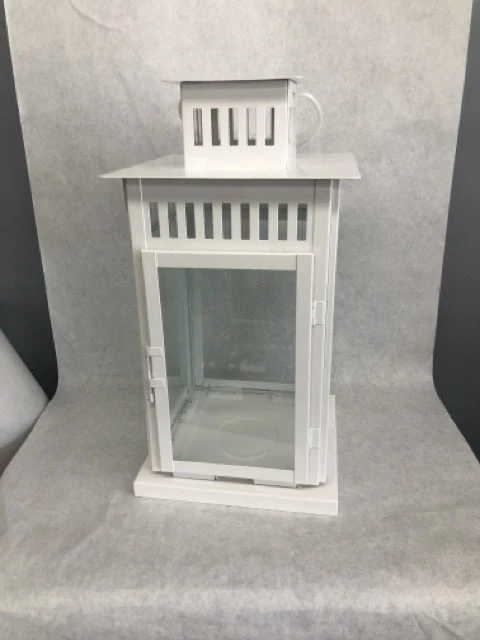 Ikea “Borrby” 9.5″x9.5″x19″ white metal lantern