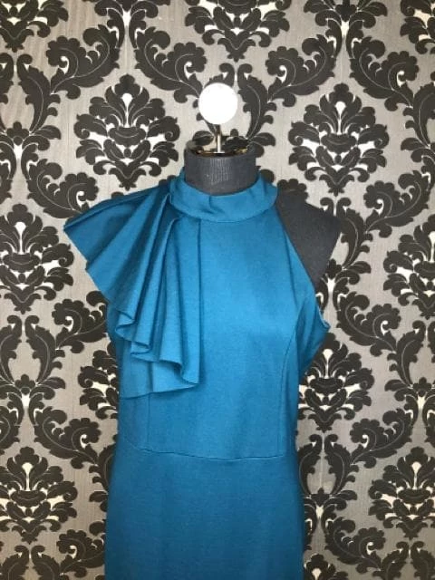 Lulus Women Formal Stretch Teal Size XL Shoulder Ruffle