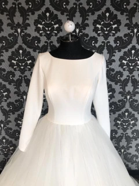 Long Sleeve Crepe Bodice & Tulle Skirt