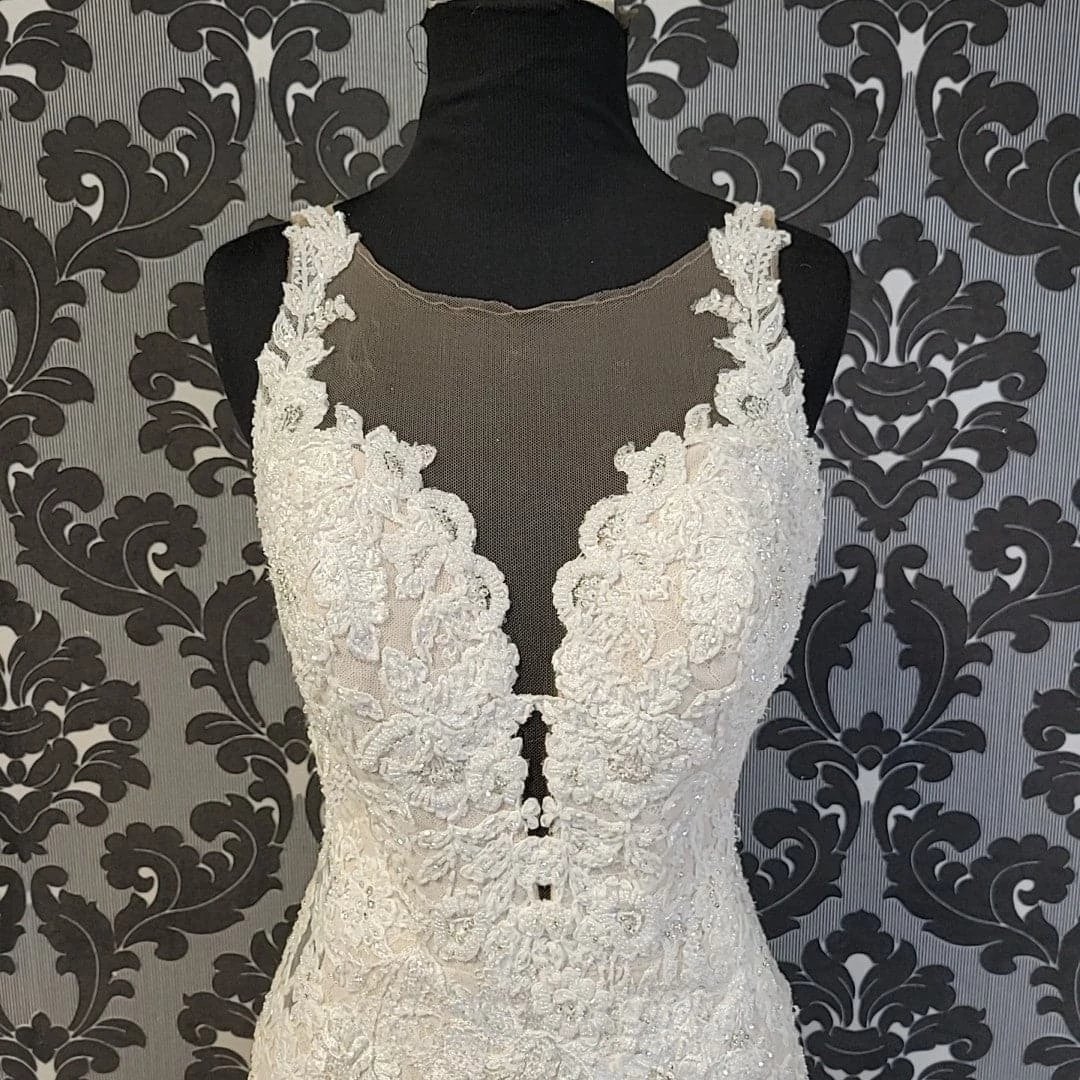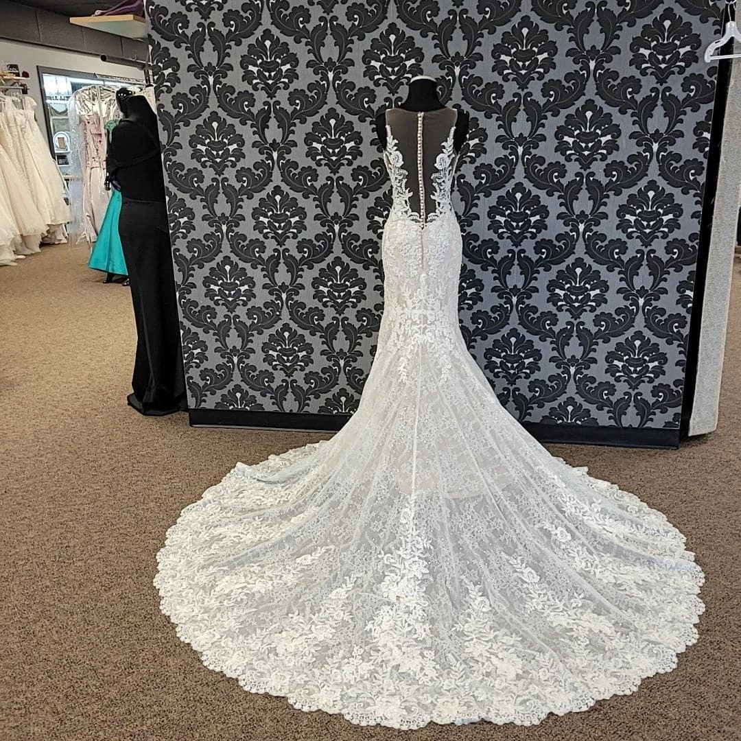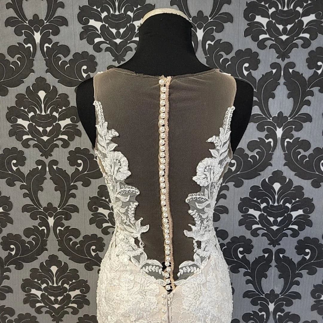 Jordayn- Beaded Lace Illusion Back with Pearl Buttons