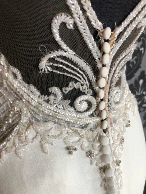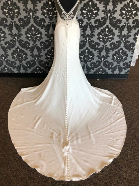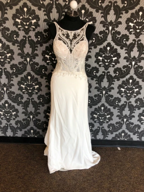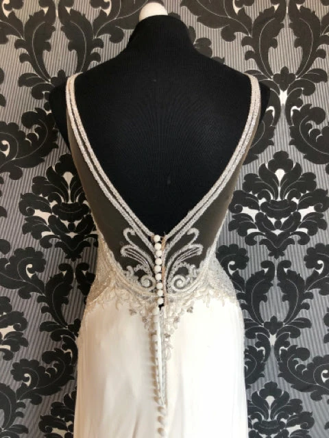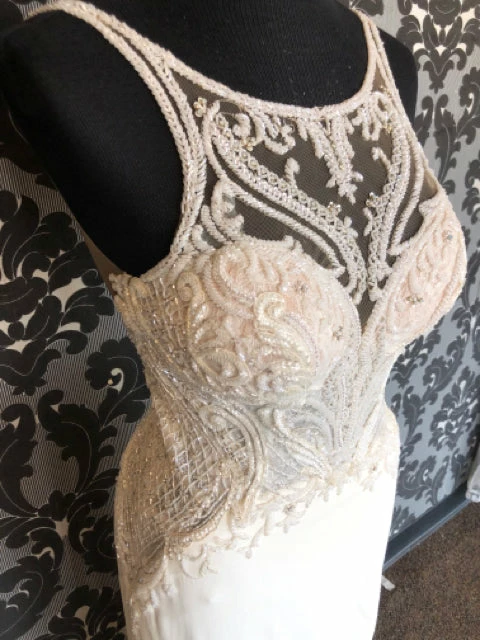 Martina Liana Wedding Dress Size 10 Crepe/Beaded Ivory Sleeveless Fit & Flare