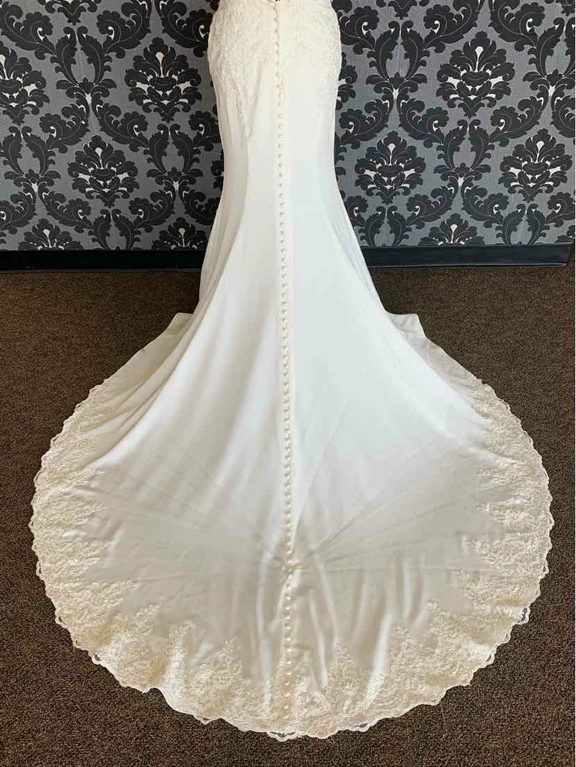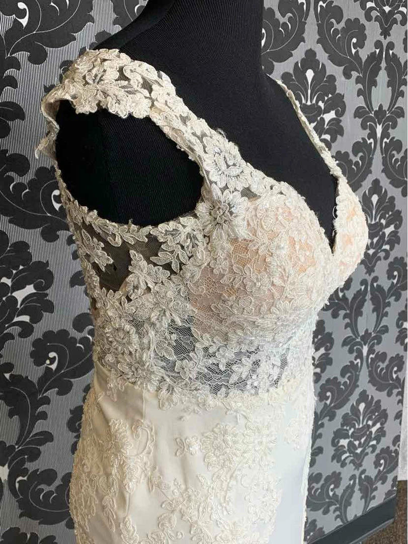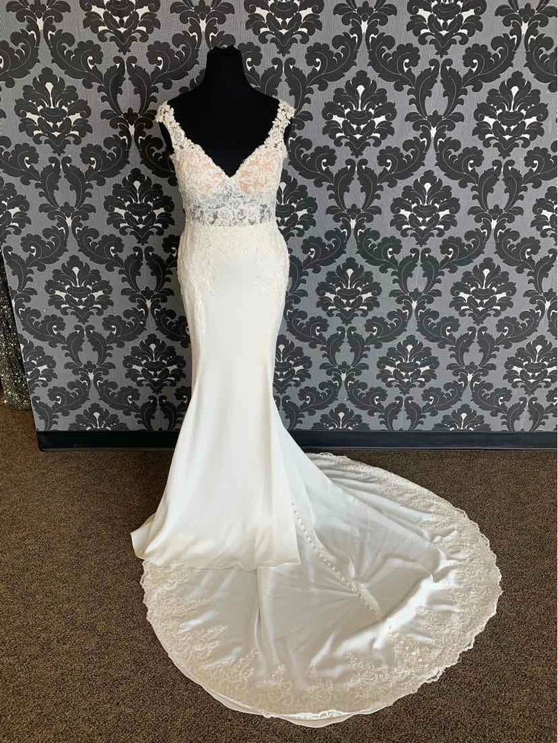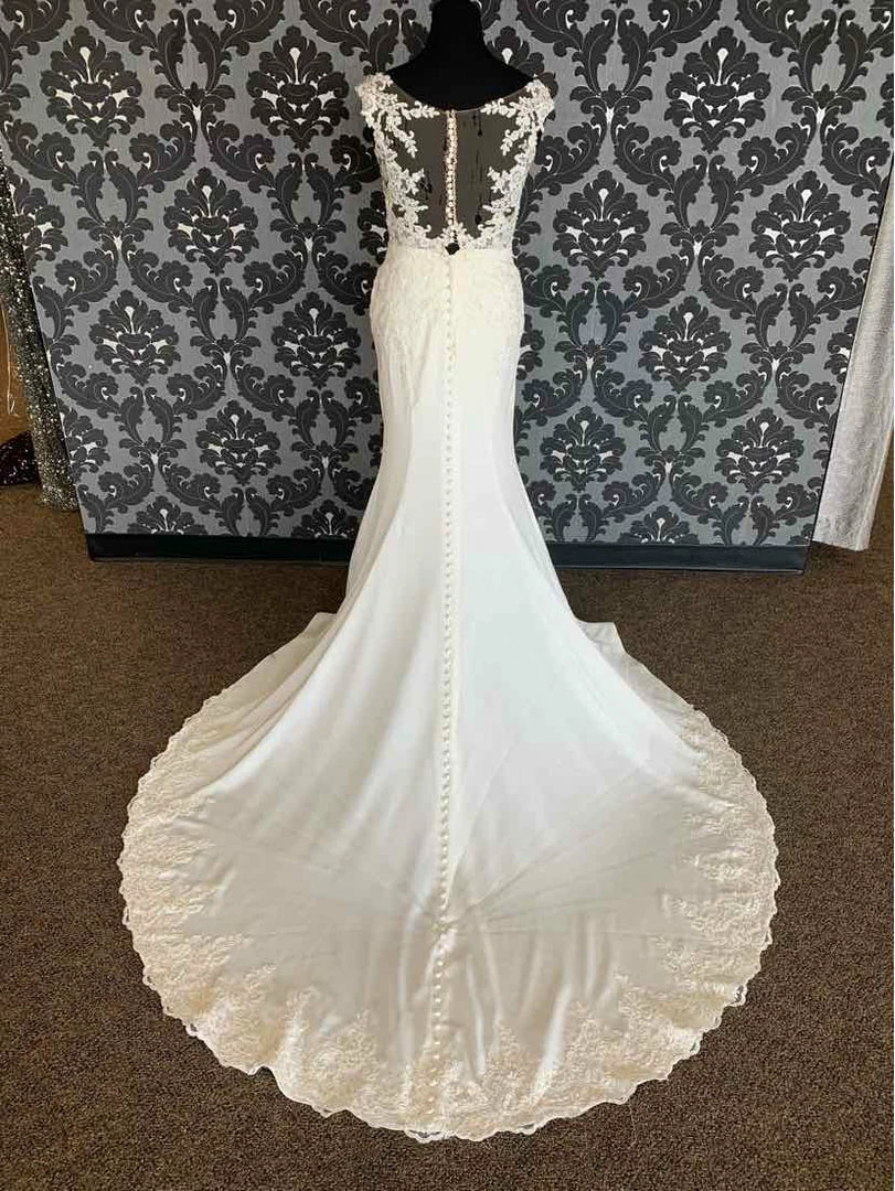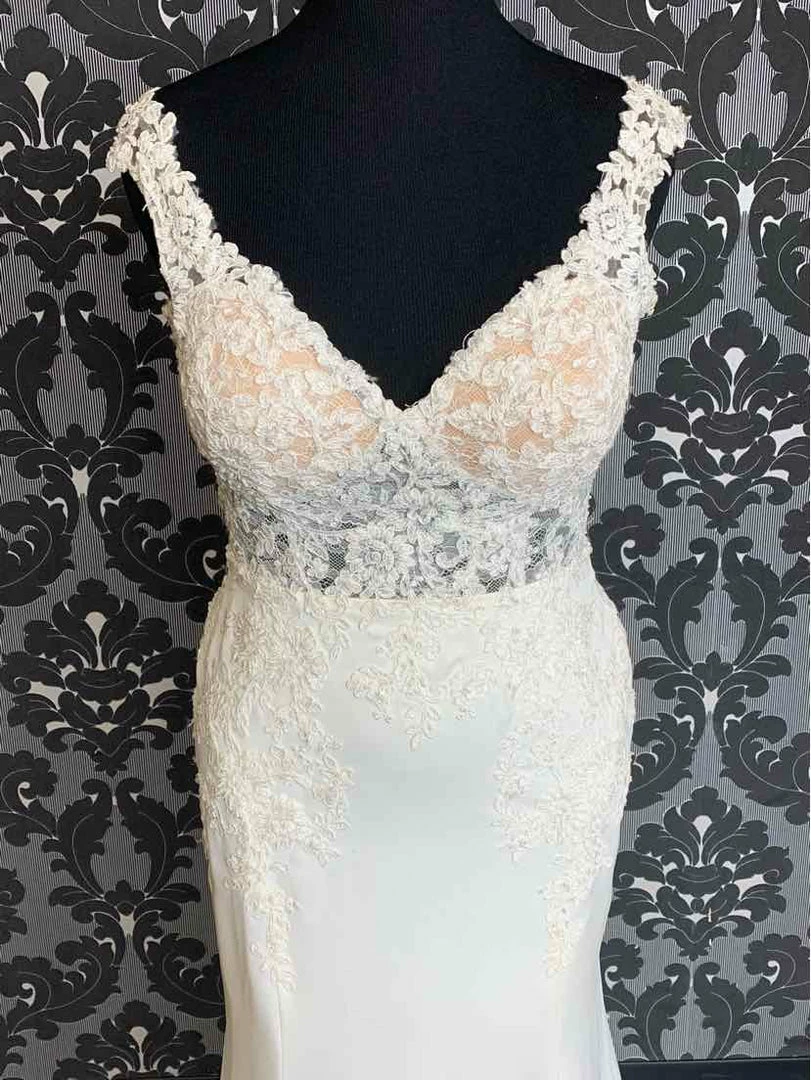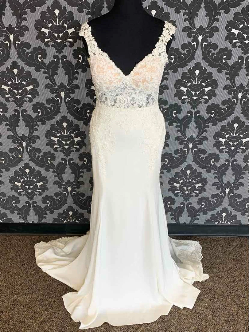 Savannah Mermaid Sleeveless Size 12 Ivory Crepe Wedding Dress AS IS RUNS IN THE BACK TULLE AND SMALL SNAGS AND STAINS