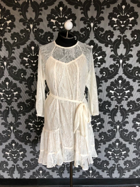 Joyfolie Mia Joy Size Large Long Sleeve Ivory Lace Dress with Belt