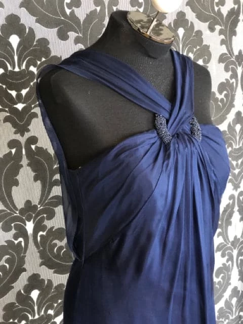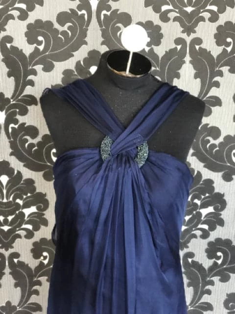 Mikael Aghal 28579 Women’s MOB Silk Navy Size 12 Floor Chiffon