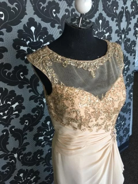 Mon Cheri 114661 Women’s Formal Chiffon Light Champagne Size 10