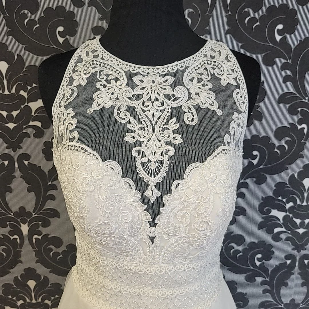 Mori Lee Wedding Dress Tulle/Lace Ivory Size 4 A-line PADMA AS IS SMALL RUNS/STAIN