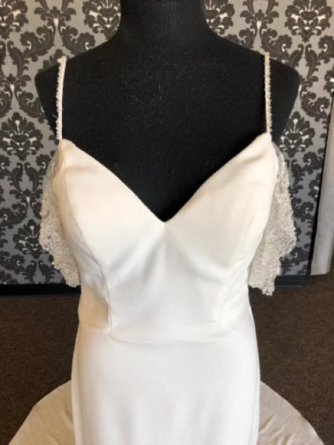 Something Blue Martina Liana Wedding Dress Size 10 Crepe/Beaded Ivory Sleeveless Fit & Flare