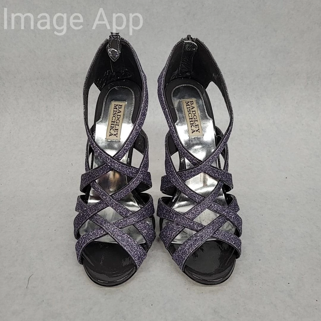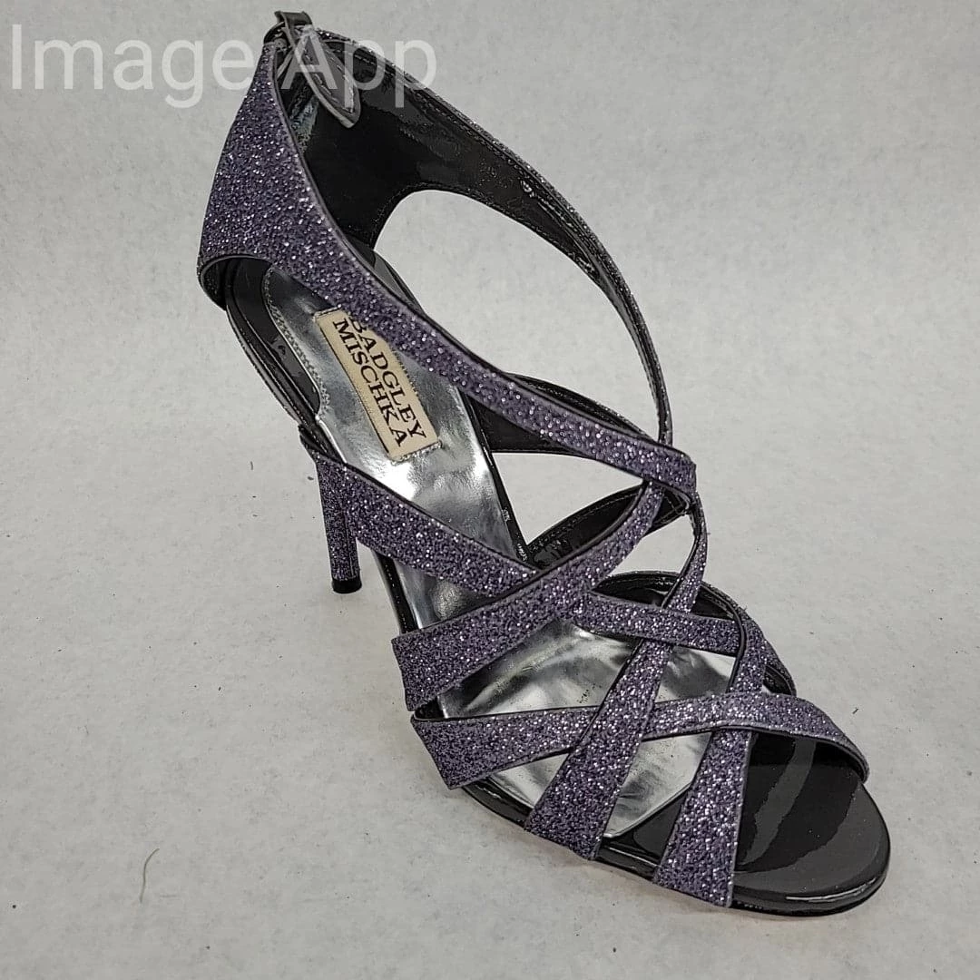Badgley Mischka MP2183 Charcoal Glitter Heels Sz 9