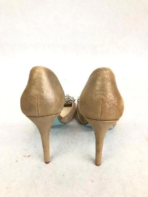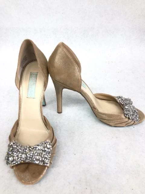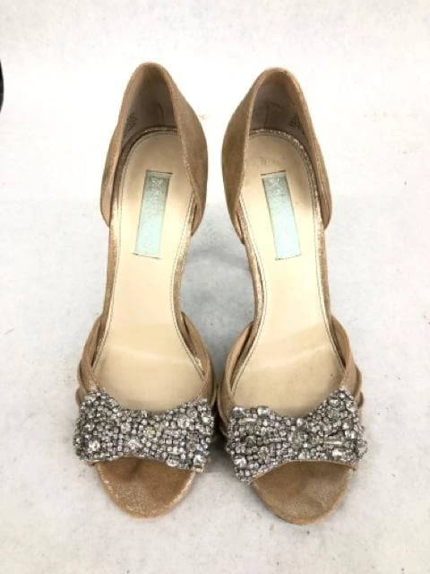 Betsey Johnson Women Heels Champagne w/ rhinestone bow Size 8