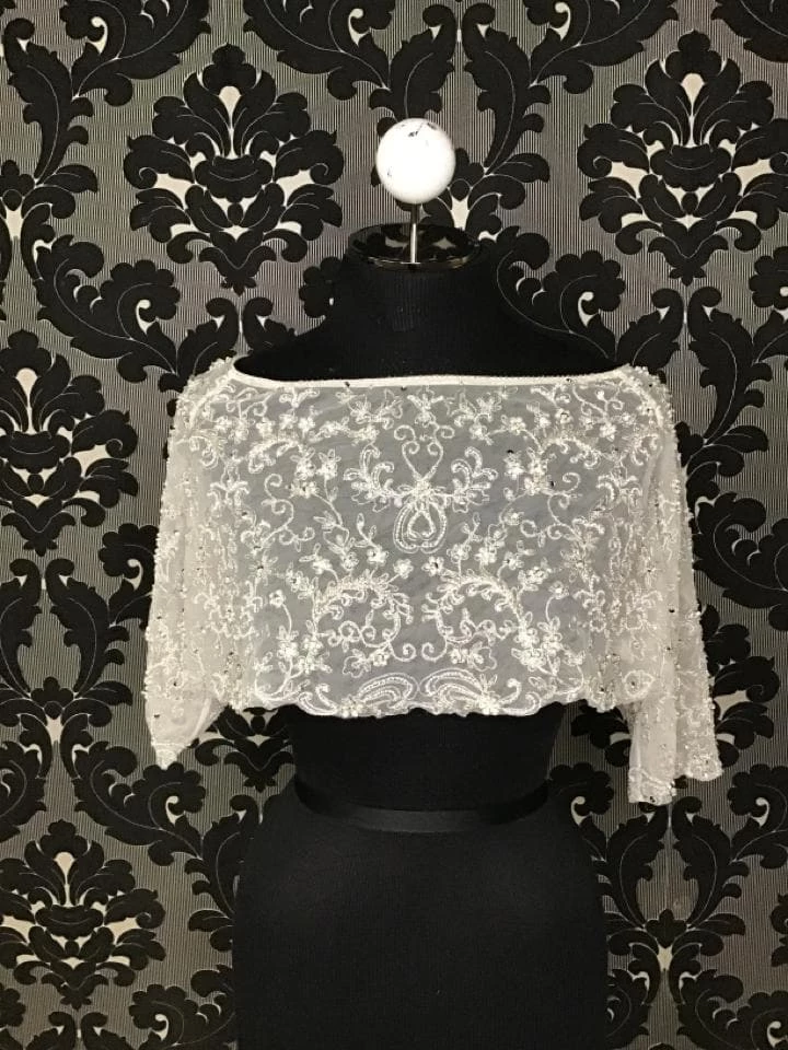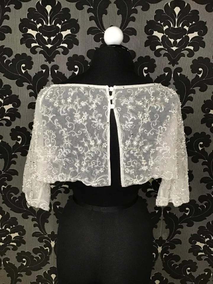 CMB518 Ivory Beaded Separate Jacket with Elbow length Sleeves Sz 12