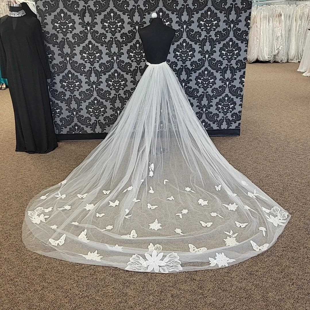 Ivory Detachable Train with Butterfly and Floral Lace Applique