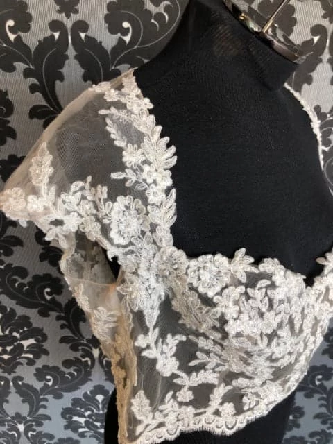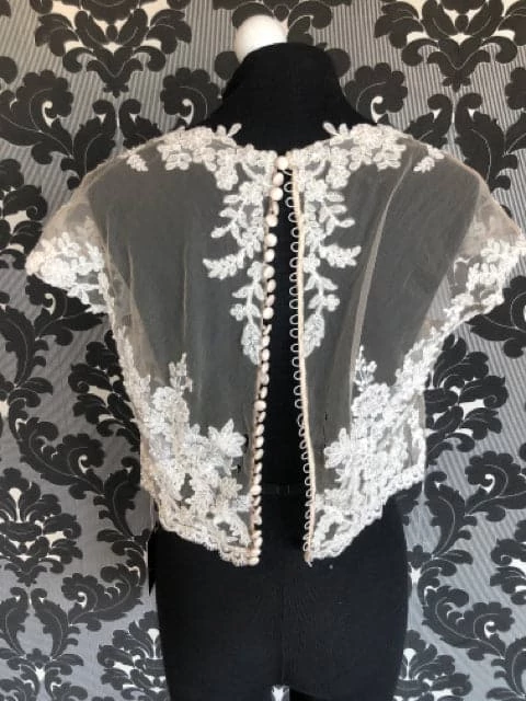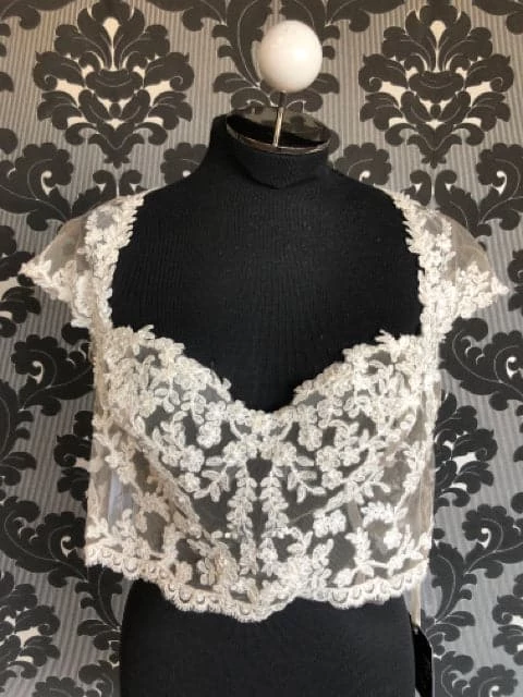 Veronica Size 14 Ivory Lace and Sequin Jacket AS IS SMALL HOLES NEAR BUTTONS