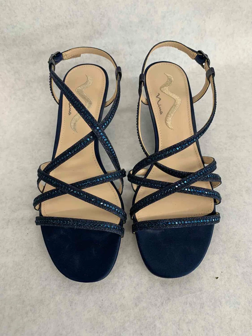 Nina FEBE-YG Wedge Size 9 Satin/Glitter Navy