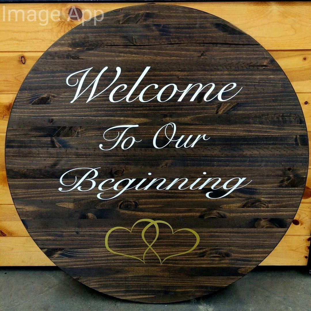 36″ Large Round Dark Stain Wood “Welcome to Our Wedding” Sign (Pick Up Only)
