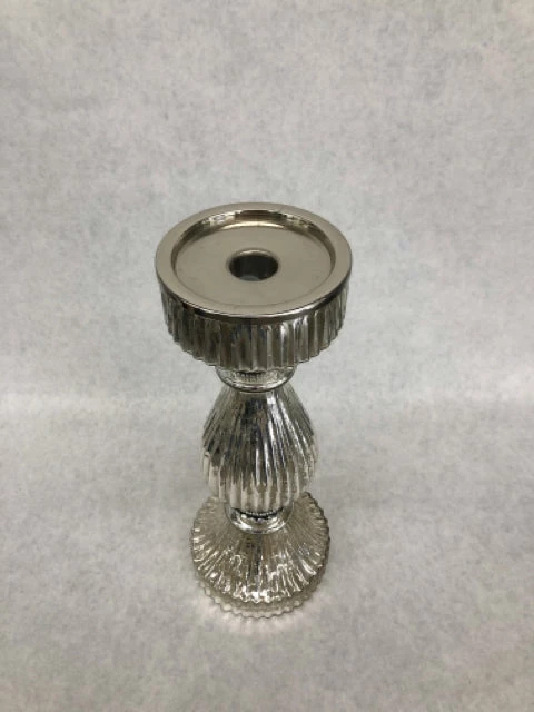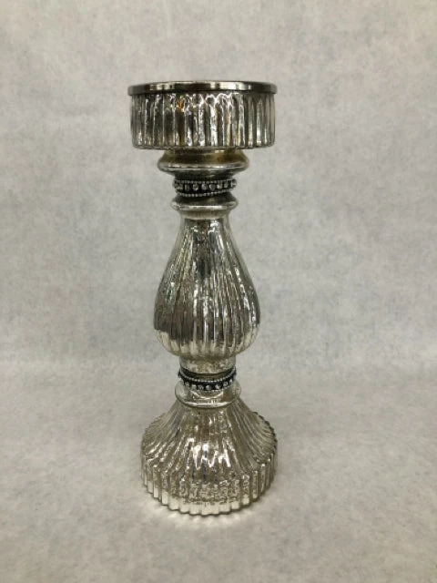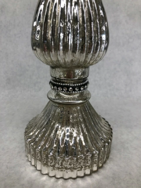 Ashland 11.5″ Silver mercury glass pillar candle holder with rhinestone details