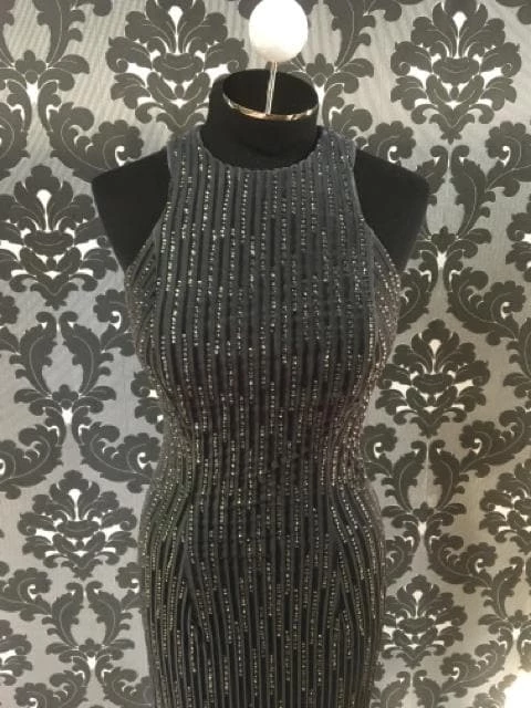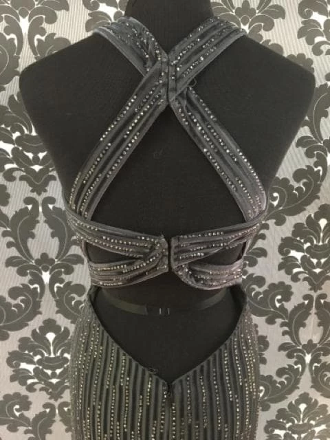 Size 4 Gun Metal LAFEMME Velvet Sheath Strappy Back 26116