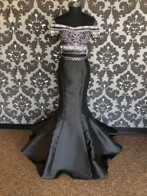 Size 6 Black/Multi Ellie Wilde 118038 Chiffon w/ Beaded Top