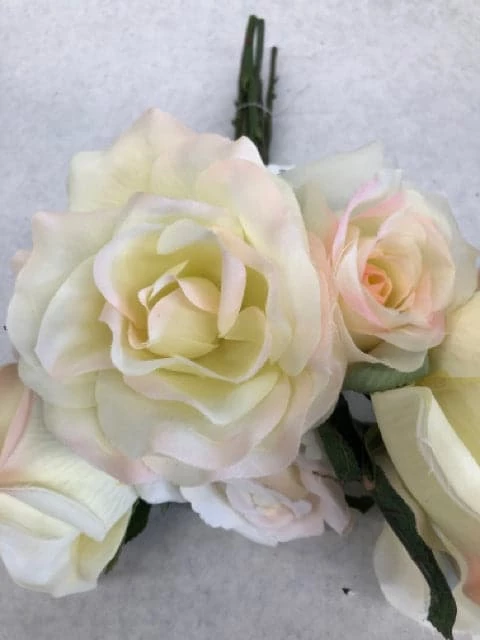 15″ Ivory Roses with Blush Tips- 6 Ct