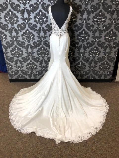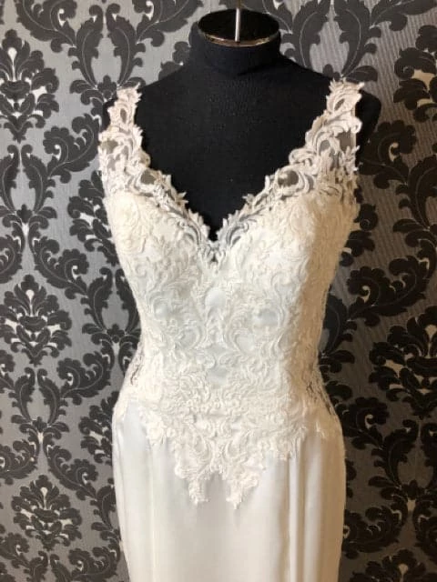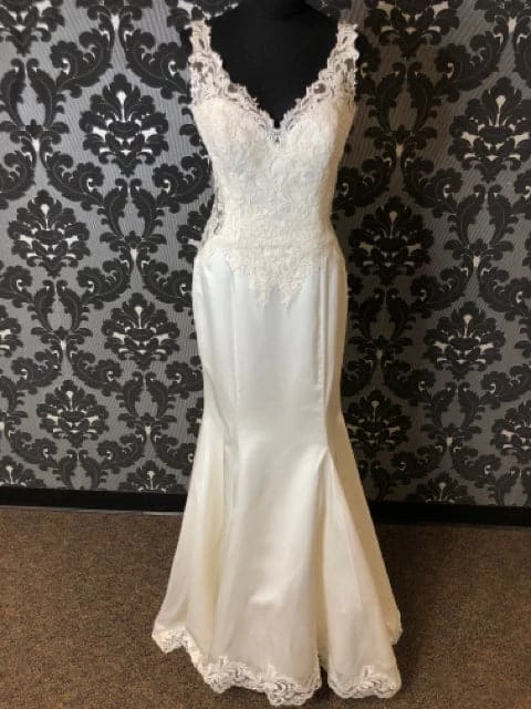 Sincerity Bridal 4015 Wedding Dress Silk/Lace Ivory/Nude Detachable Sleeves