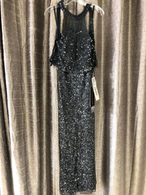 Size 0 Charcoal Primavera Sequin 1546 All over Beaded with Illusion Top (2 Pc)