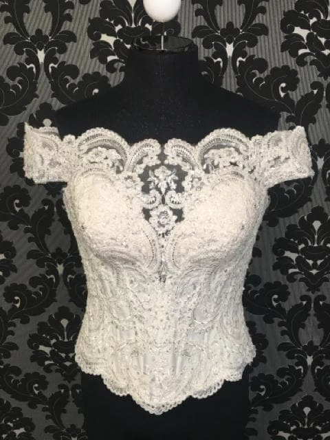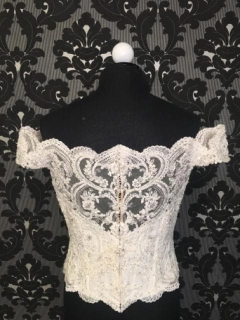 Size 14 Ivory 6960 Martina Liana Chelsi Beaded Lace Off the Shoulder Bodice