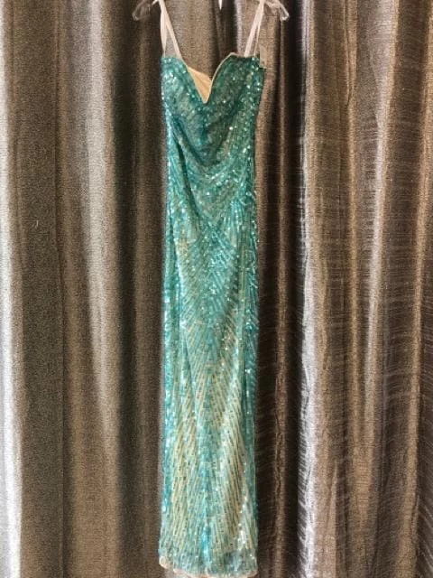 Size 2 Aqua MacDuggal Sequin Strapless Sheath
