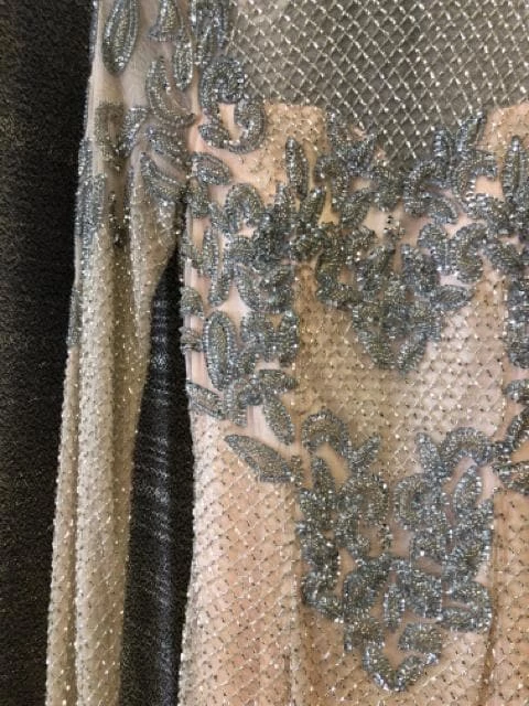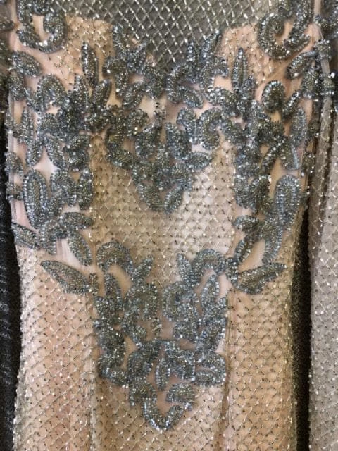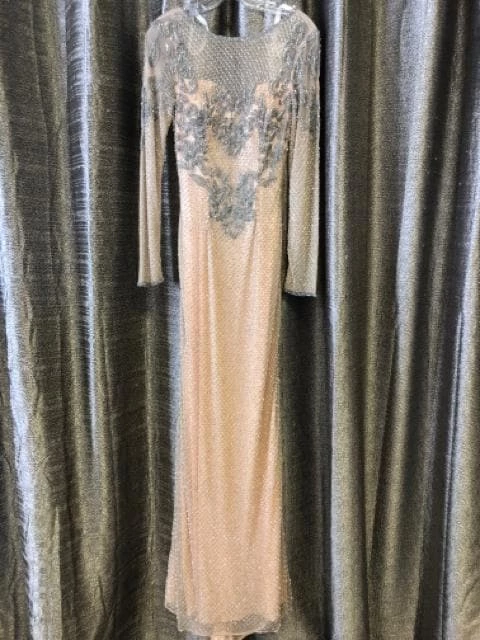 Size 2 Blush Primavera Beaded 3051 Blush Sheath Long Sleeve with All-over Silver Beading