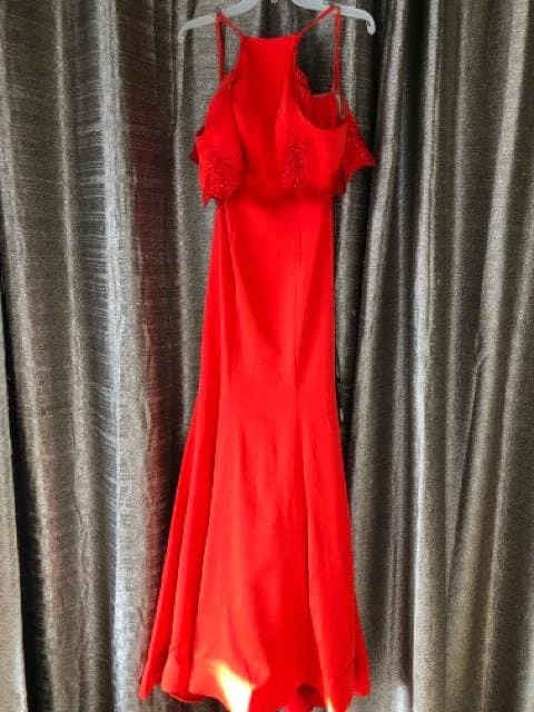 Size 4 Red LAFEMME Bengaline Overlapped Top w/ Lace and Scattered Sequin and Plain Skirt