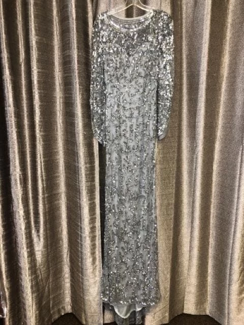 Size 4 Silver Primavera Sequin Long Sleeve Floor Length