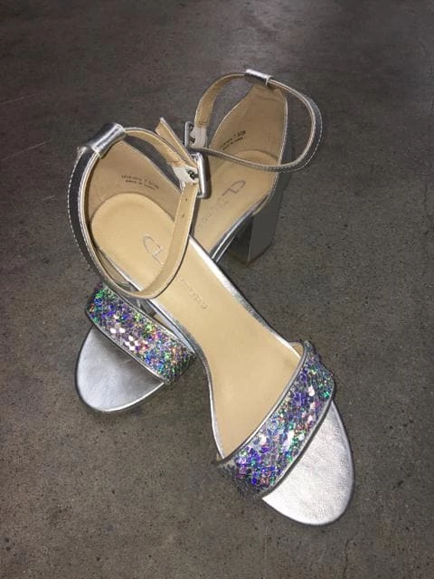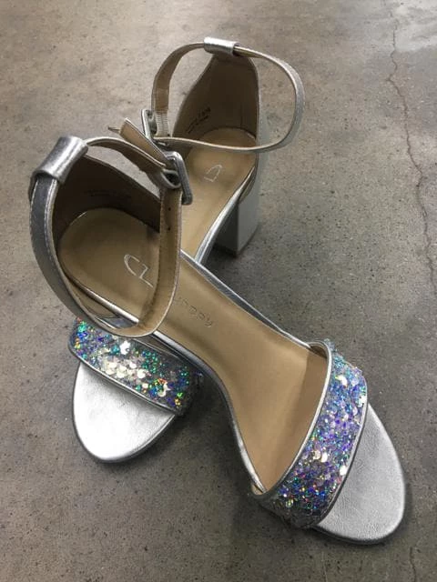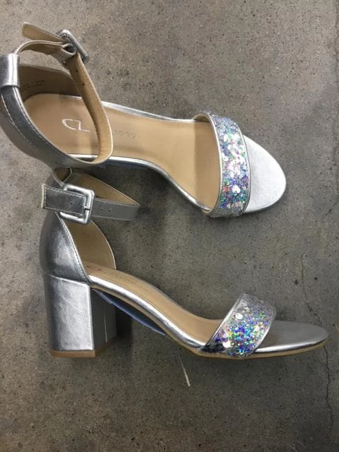 Size 7.5 Silver Laundry Sequin Strap Block Heel