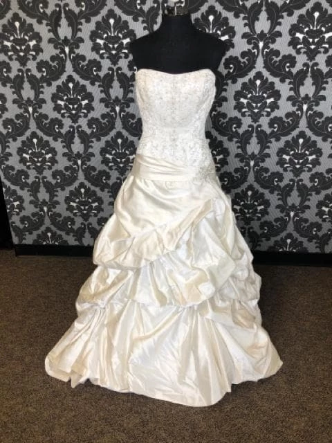 Size 8 Champagne Satin/Beaded Bodice A-line Modified Sweetheart